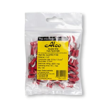 Crimp Terminal Pre-Insulated Fork 3.7mm Cable 0.5-1.5mm² Red 100 Pack